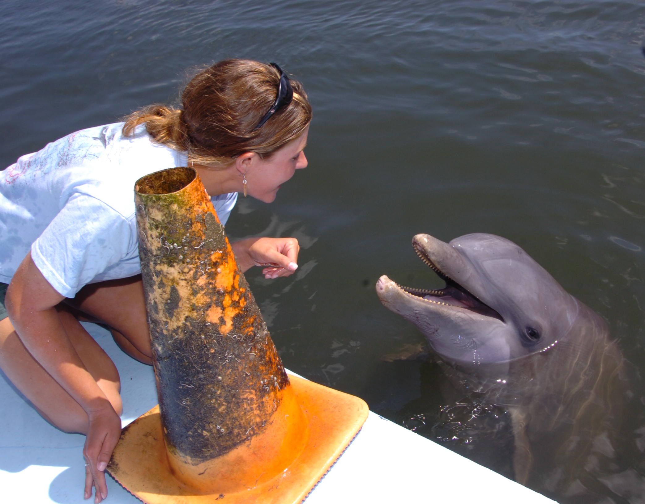 Maybe it was just coincidence, but I felt pretty darn special after these two occurrences. Tursi gifted me her baby and Talon spent minutes digging up a traffic cone for me. I would have been happy with a silly piece of seaweed or coral–but they went a little crazy! I don’t think I’ve ever loved a gift as much as these ones given to me by the dolphins!