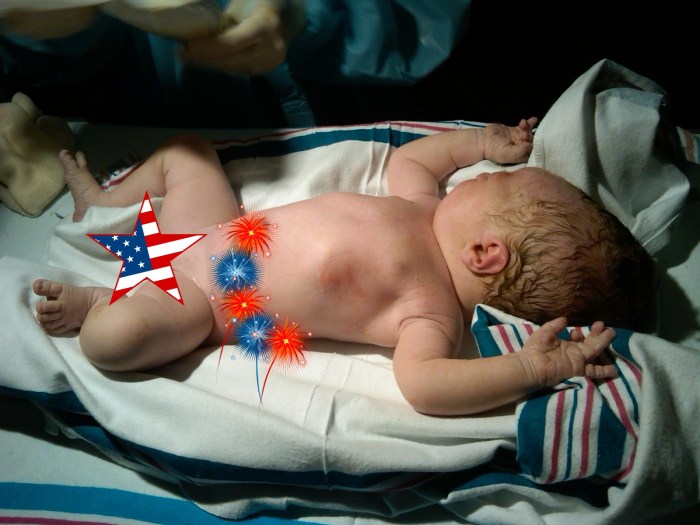 No, he wasn't born with an American flag covering his family jewels or an explosive umbilical cord; I thought I'd spare you the details 🙂
