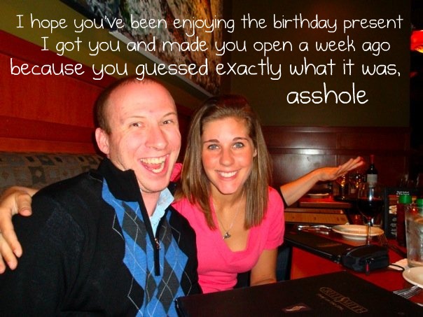 BAHAHAHAHA! Love it. What was the present? I can’t believe he guessed it. That is insane!