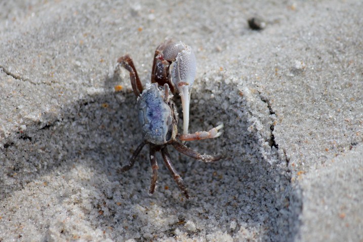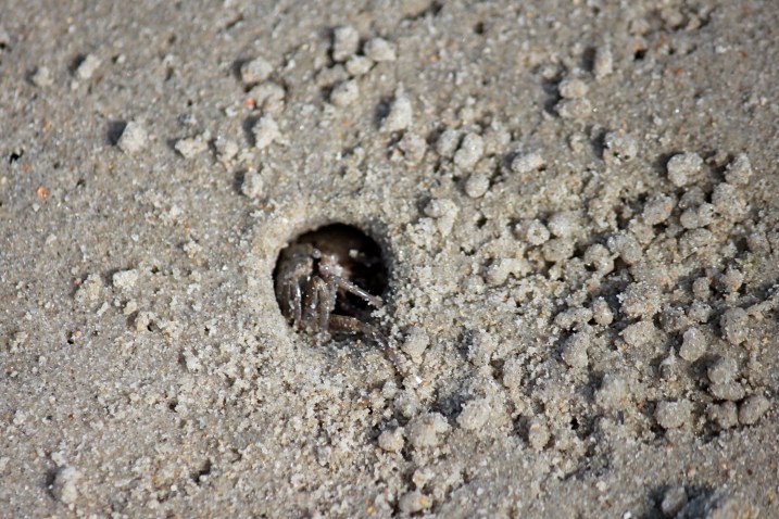This past Tuesday Isaac and I went to the inlet on Topsail Island. We spent about 2 hours walking around the empty beach; he skipping rocks and me photographing the wildlife. My favorite part was stumbling upon hundreds of crabs digging in the sand!! It was amazing. The beach was so quiet that you could hear them shuffling in the sand and snapping their claws. I have never seen so many crabs in one place. Maybe this is normal crab behavior, but to me it was most unusual. Also, what’s with the one giant claw and one normal-sized claw?
