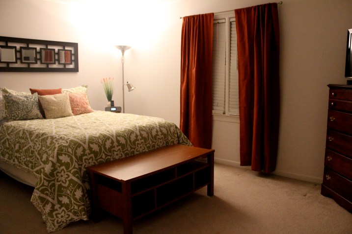 Immediately after three and a half hours of wedding dress shopping, my selfless mother was ready to help me revamp my bedroom. I don’t think you can even call it a bedroom. It was a room that happened to have a bed in it and I happened to sleep there. It was a dumping ground for junk. It was not decorated or put together at all. I am extremely sensitive as to how a room “feels” so not having it feel cozy since we moved in has been really hard for me. To even try and think about redoing it was super stressful though.
