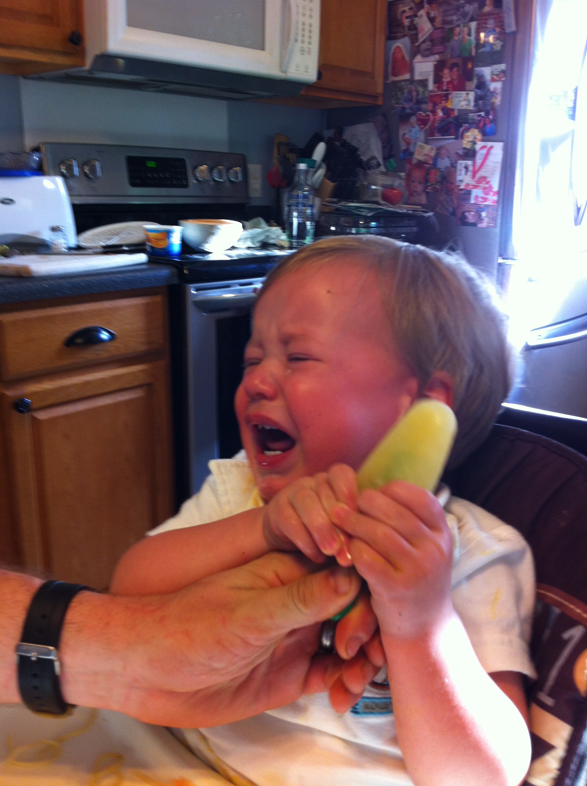 Trying to show him the right way to hold a popsicle