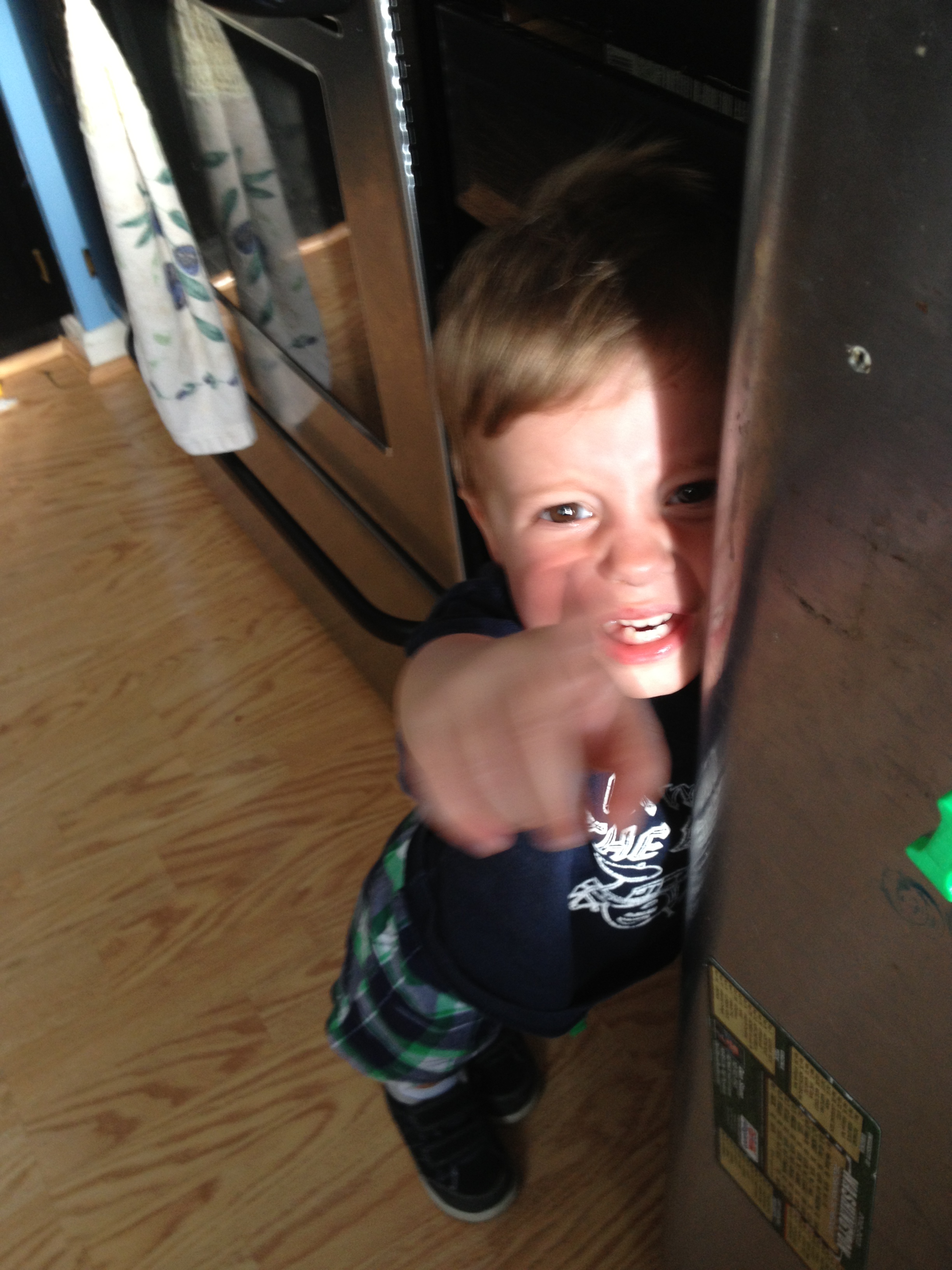 Because I won’t give him chocolate milk (look at that finger in her face HAHA!)